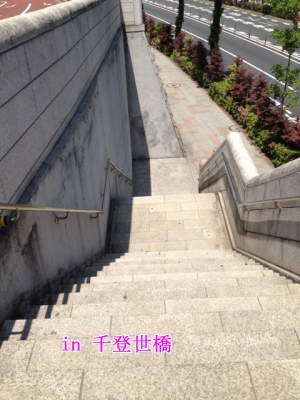 鬼子母神駅をでて少し行くと道路の上に橋があって上下道になるんですが、その下に降りる階段がこれ