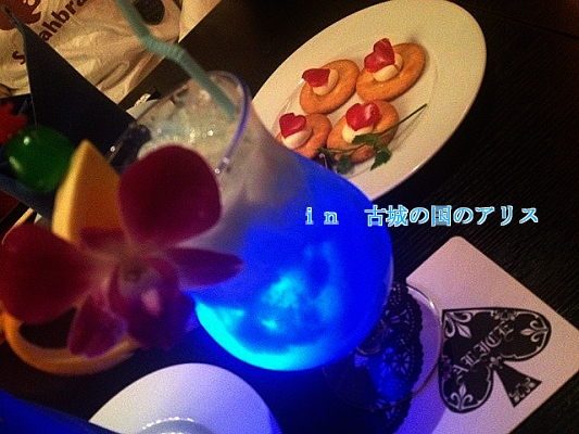 下の物は「あなたがハートの女王様?」というもので、透明のドリンクにアリスが「女王様は白いものがお嫌いですので…」と赤いものを足すと…まっかなカクテルにv